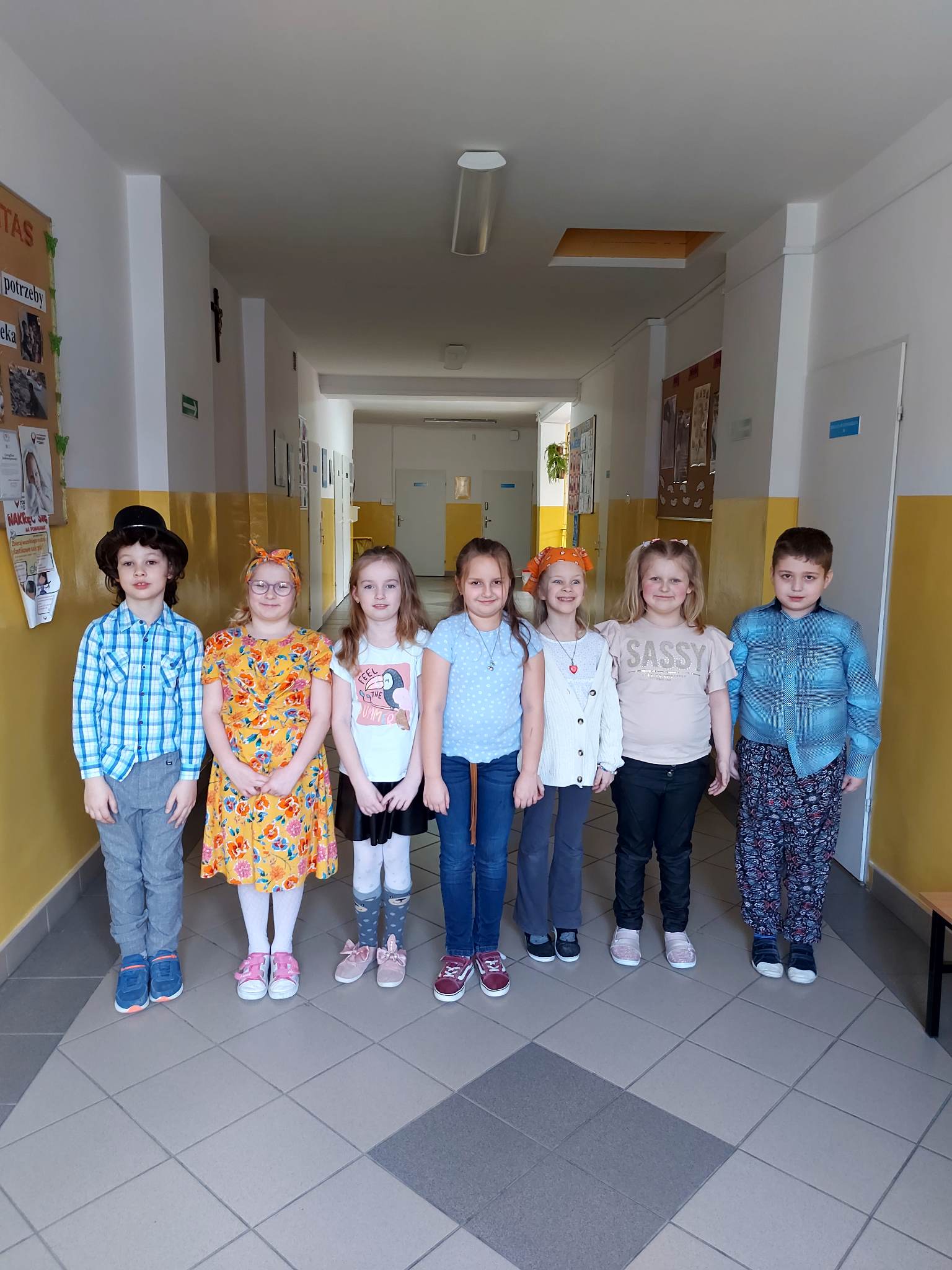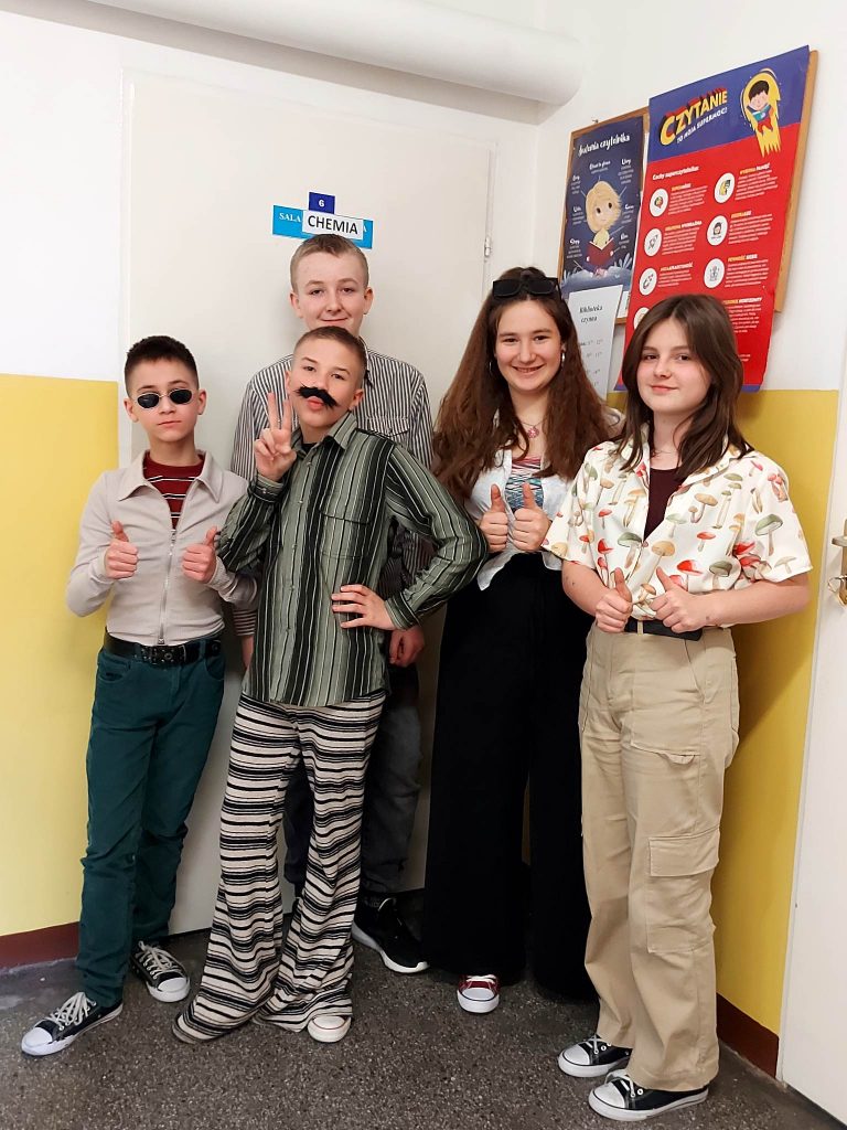 Już od samego rana w naszej szkole było widać, że nadszedł dzień 8 marca czyli Dzień Kobiet. Chłopcy zachowywali się jak dżentelmeni i wręczali swoim koleżankom i Paniom nauczycielkom kwiaty oraz słodkości. Z tej okazji odbył się również apel okolicznościowy przygotowany przez uczniów ósmej klasy. Dodatkową atrakcją była zorganizowana przez Samorząd Uczniowski akcja przebierania się – wybór padł na stroje lat 60 i 70. Było barwnie, szykownie i śmiesznie.