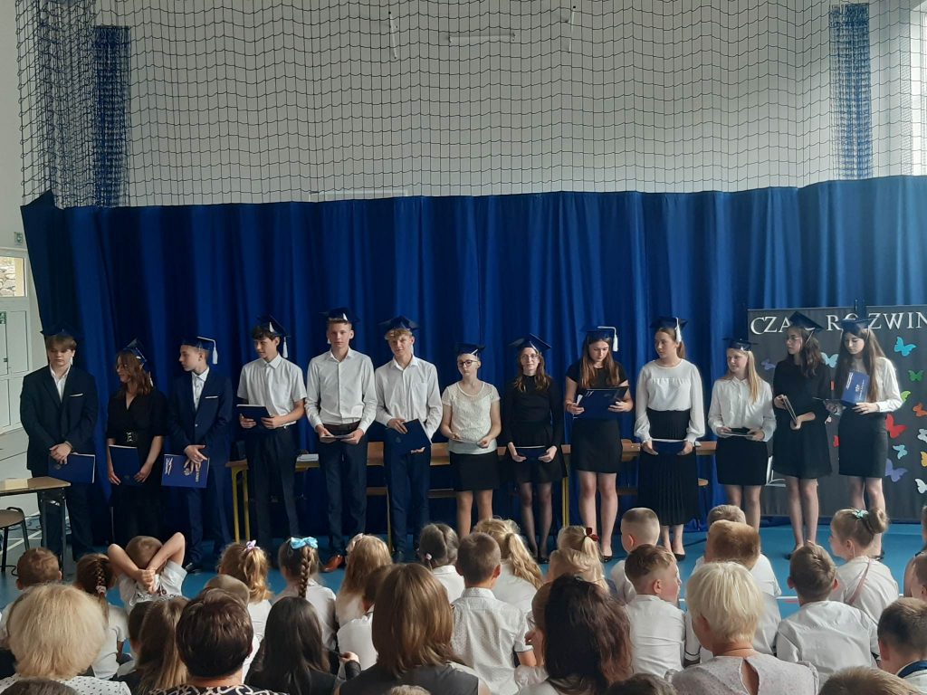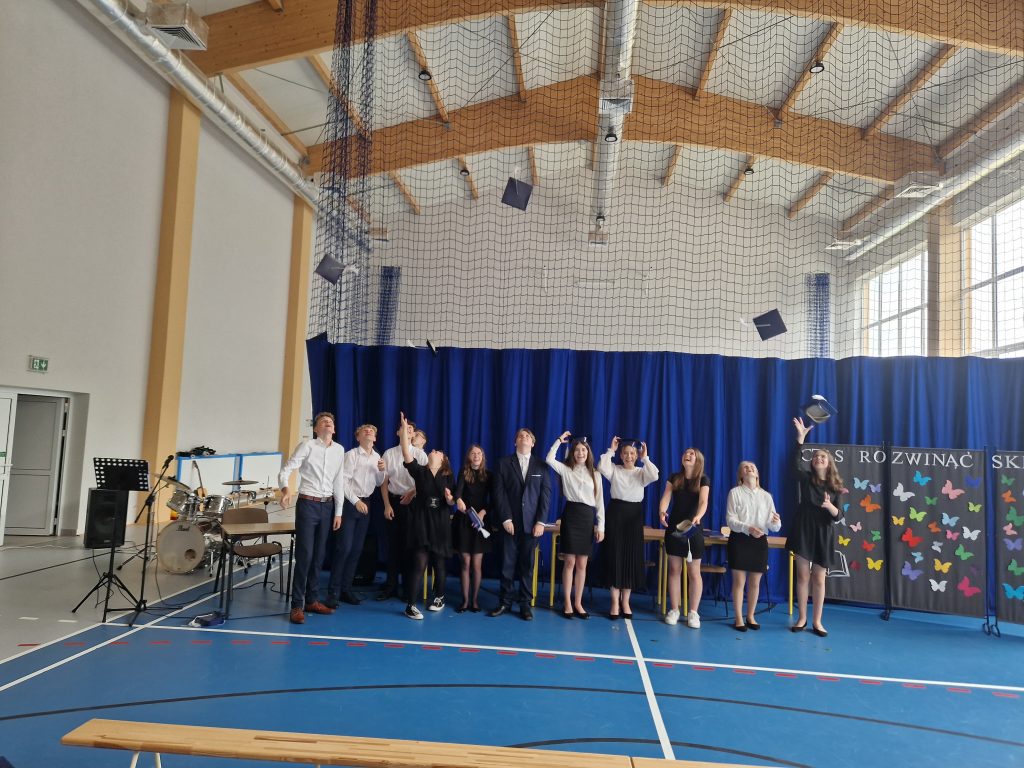 Nasz wspólny czas z klasą ósmą dobiegł końca. Dziś rozchodzą się wspólne drogi. Te chwile spędzone razem zostaną w pamięci, ufamy, że dobrej i wdzięcznej. Cóż nam zostaje? Życzyć sobie pogodnych dni, pięknego życia i życzliwych ludzi obok, a prawdziwym sukcesem niech będzie serce otwarte na drugiego człowieka i świat. Rozwińcie swe skrzydła i niech Was niosą ku Pięknu, Dobru i Prawdzie. Dziękujemy za wszystko.
