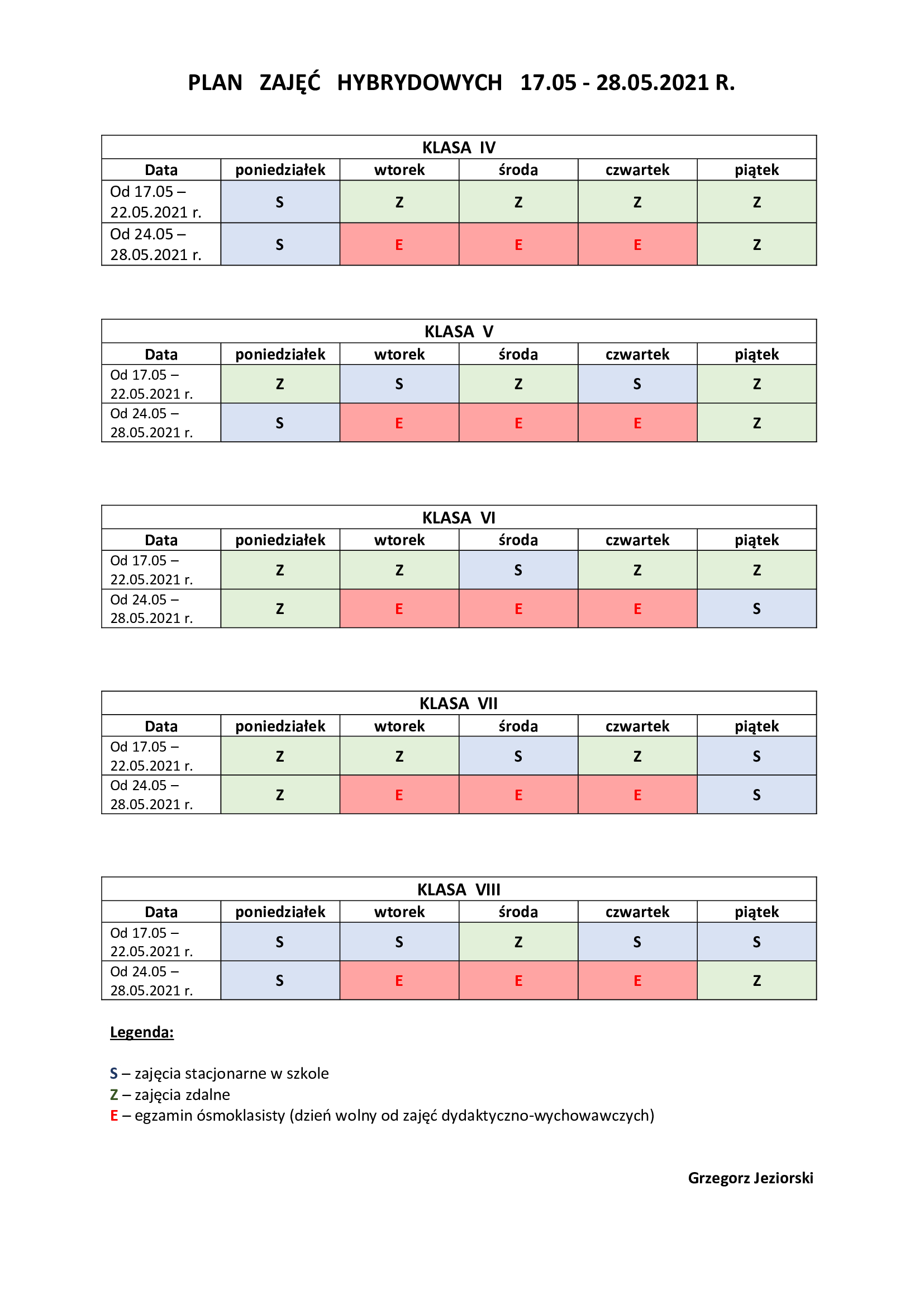 Aktualności 10 maja 2021 przez Grzegorz Jeziorski · Published 10 maja 2021 Plan zajęć hybrydowych od 17.05 do 28.05.2021 r.
