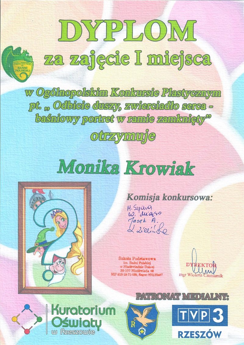 Aktualności 19 maja 2021 przez Grzegorz Jeziorski · Published 19 maja 2021 Sukces naszej uczennicy Moniki Krowiak w ogólnopolskim konkursie plastycznym