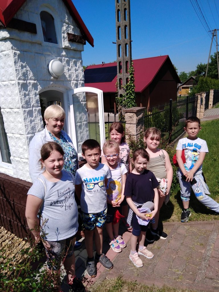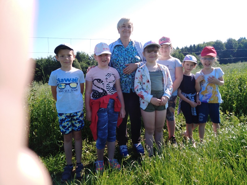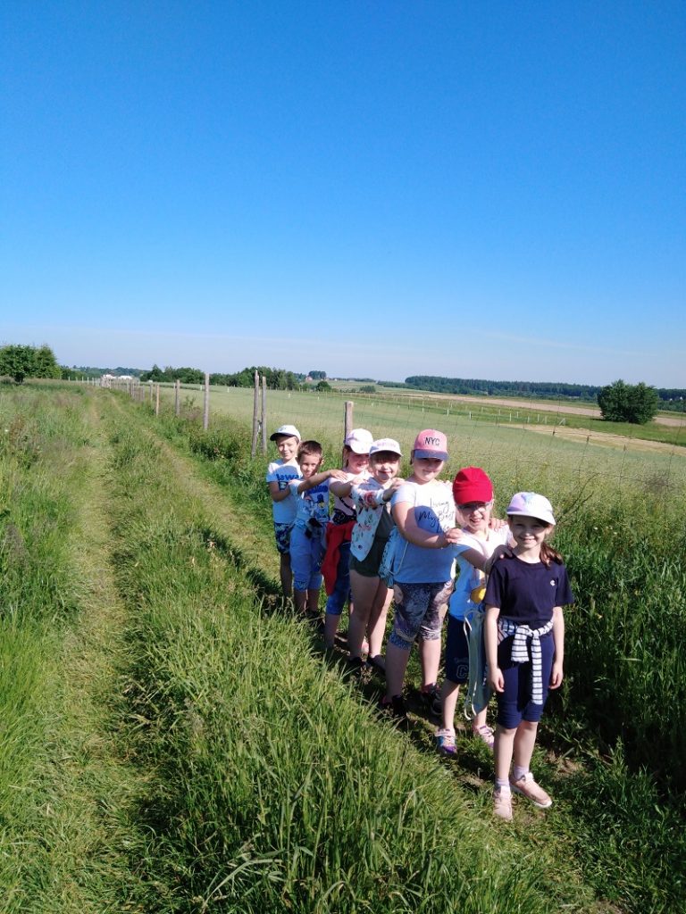 W dniu 16.06.2021 pierwszoklasiści wraz z wychowawczynią wyruszyli na wycieczkę pieszą do pobliskiej miejscowości- Wólki Hyżneńskiej. Była wspaniała, słoneczna pogoda. Droga wiodła przez polne drogi. Rozpoznawaliśmy zboża, które pięknie falowały, drzewa, krzewy i oczywiście kwiaty polne. Po krótkim odpoczynku, orzeźwiających lodach, wszyscy chętnie zagrali w piłkę. W powrotnej drodze śpiewaliśmy znane piosenki, podziwialiśmy piękne, przydrożne kapliczki. Około południa, zmęczeni, ale radośni wróciliśmy do szkoły.