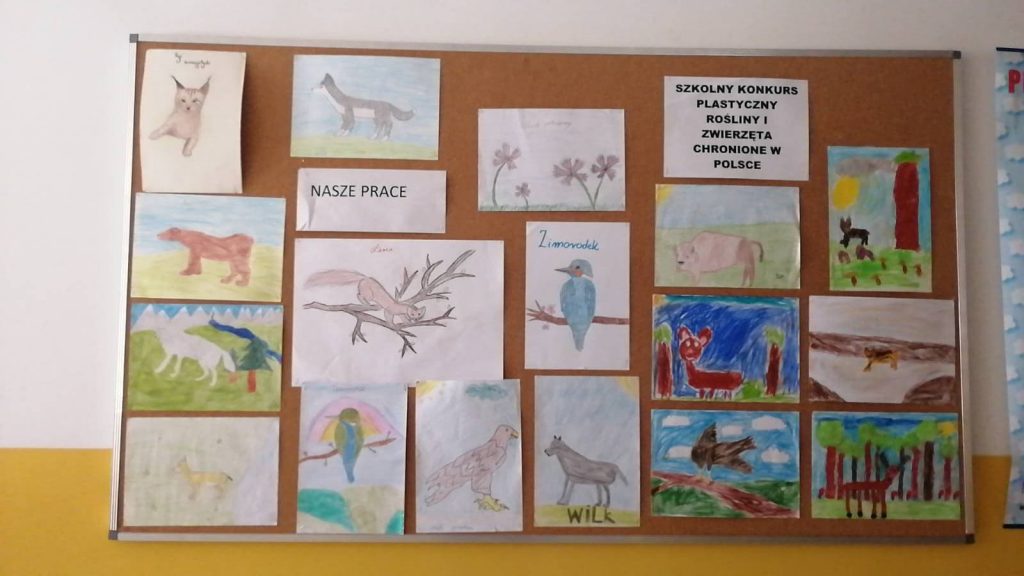 W naszej szkole został przeprowadzony konkurs plastyczny pt: ROŚLINY I ZWIERZĘTA CHRONIONE w Polsce. Celem konkursu było poznanie rodzimych gatunków roślin i zwierząt chronionych, uwrażliwienie na piękno przyrody oraz wyłonienie talentów plastycznych. Na konkurs wpłynęło bardzo dużo prac, a jury wyłoniło 6 najciekawszych które zostały nagrodzone.