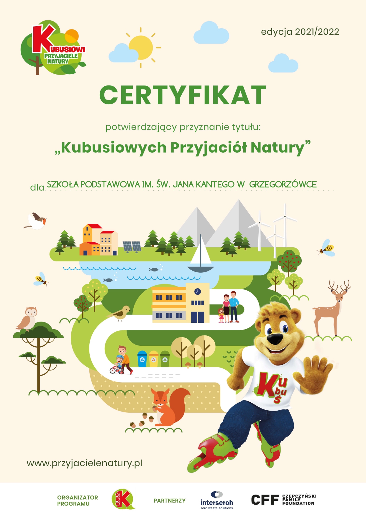 Aktualności 20 czerwca 2022 przez Grzegorz Jeziorski · Published 20 czerwca 2022 Certyfikat „Kubusiowych Przyjaciół Natury”