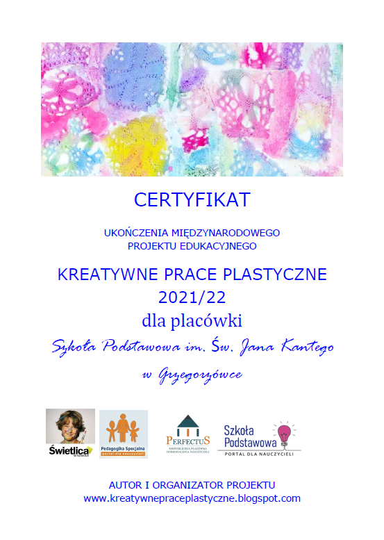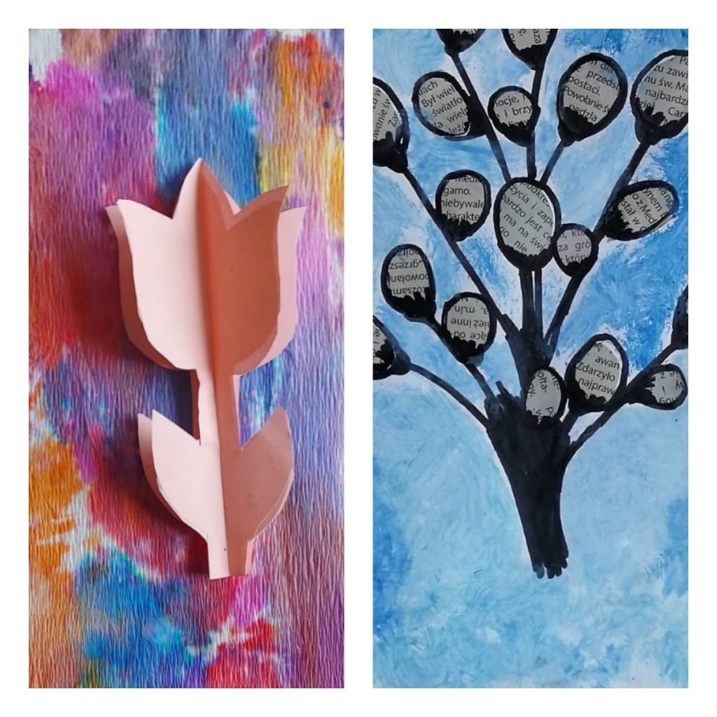 Uczniowie eksperymentowali z różnymi materiałami, narzędziami i technikami plastycznymi i nabywania doświadczeń wykonując swoje prace. Bardzo często wykorzystywaliśmy materiały z recyklingu np. gazety, wcześniej zrobioną pracę plastyczną. Było również malowanie kawą, po zmiętym papierze. Prace były nawiązaniem do aktualnych świąt i pór roku. Prace uczniów były umieszczane na fb organizatora – uczniowie mogli porównać sobie jak takie prace wykonali ich rówieśnicy. Był to bardzo ciekawy projekt. Poniżej kilka prac wykonanych w ramach projektu.