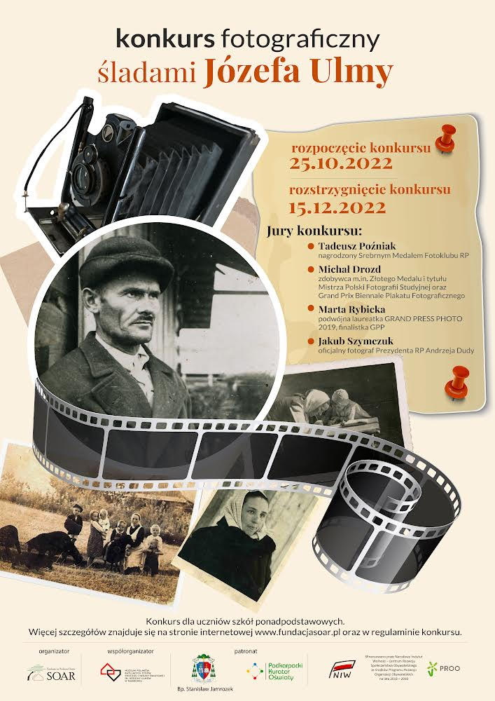 To tylko niewielki fragment historii, którą Fundacja im. Rodziny Ulmów SOAR chce opowiedzieć światu. Jej dalszą część poznać można biorąc udział w konkursie fotograficznym śladami Józefa Ulmy. Konkurs kierowany jest do uczniów szkół ponadpodstawowych, których pasją jest fotografia. Warsztaty fotograficzne połączone z jesiennym plenerem poprowadzą doświadczeni i cenieni w Polsce oraz za granicą specjaliści fotografii.
