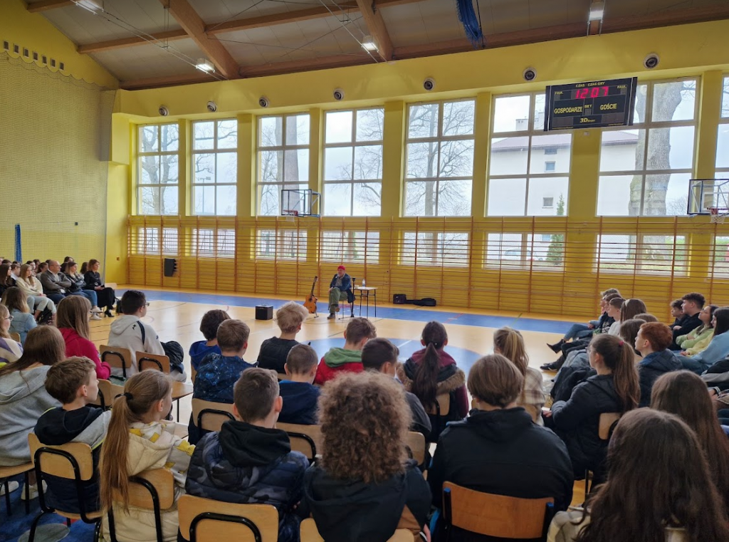 W środę 19.04 uczniowie kl. VII i VIII uczestniczyli w Szkole Podstawowej w Hyżnem w programie profilaktycznym pt. ,,Kuszenie śmierci” przedstawionym przez znanego aktora. Lech Dyblik opowiadał o swoim życiu i o tym jak nałóg może zniszczyć człowieka oraz o swojej walce z uzależnieniem. Podkreślił wartość rodziny w życiu każdego człowieka wielokrotnie wspominając o swojej żonie. Wielokrotnie podkreślał, że relacje w rodzinie trzeba budować i o nie dbać.