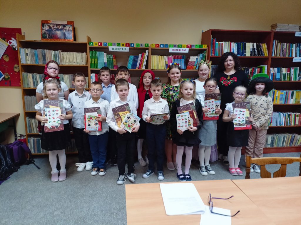 W marcu odbyło się uroczyste pasowanie na czytelnika, które poprzedziła inscenizacja „ W krainie baśni ”, w wykonaniu uczniów klasy IV. Następnie pierwszoklasiści dowiedzieli jak należy dbać i szanować wszystkie książki, złożyli uroczyste ślubowanie i oficjalnie wstąpili do grona czytelników. Na zakończenie bibliotekarka zapoznała dzieci z regulaminem biblioteki szkolnej i zachęciła najmłodszych do częstego korzystania z księgozbioru podręcznego i wypożyczania książeczek. Na pamiątkę pasowania każdy uczeń otrzymał okazjonalny dyplom oraz książkę Wnuczka antykwariusza autorstwa Justyny Bednarek, w opracowaniu graficznym wybitnej ilustratorki Emilii Dziubak, a rodzice broszurę instruktarzową informującą o korzyściach wynikających ze wspólnego, rodzinnego czytania.