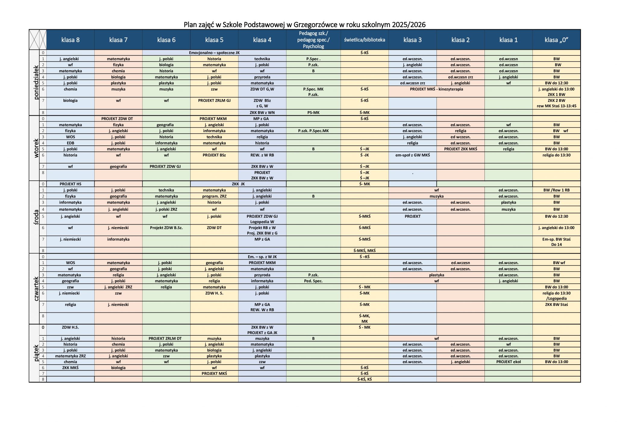 Dostęp – godziny do dyspozycji uczniów i rodziców