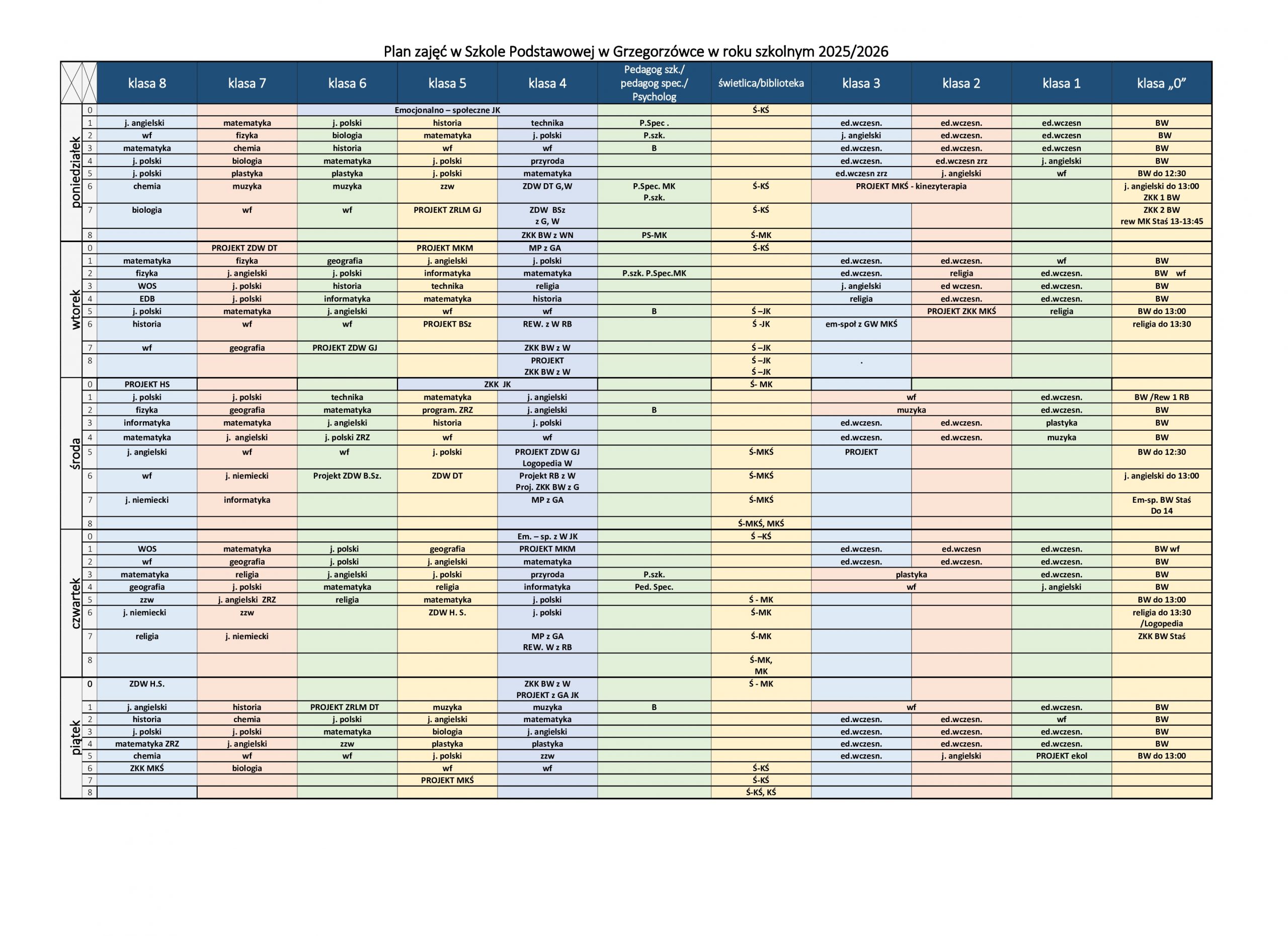 Dostęp – godziny do dyspozycji uczniów i rodziców